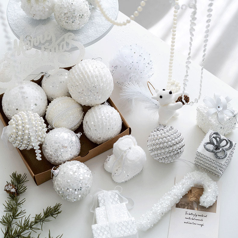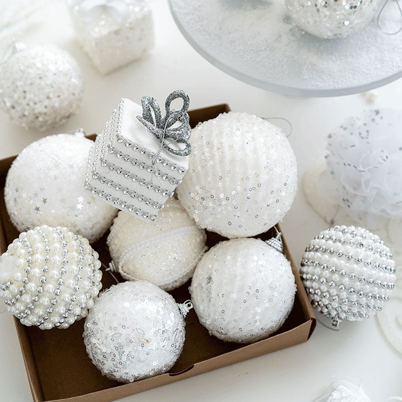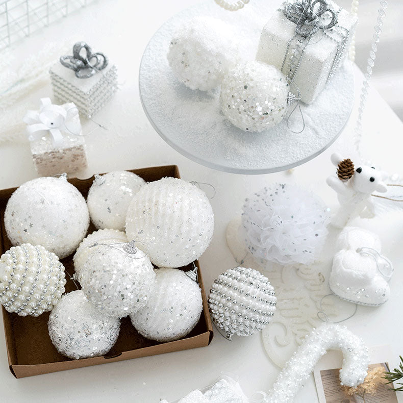 ホワイトボールオーナメント 60mm~100mm 8個セット