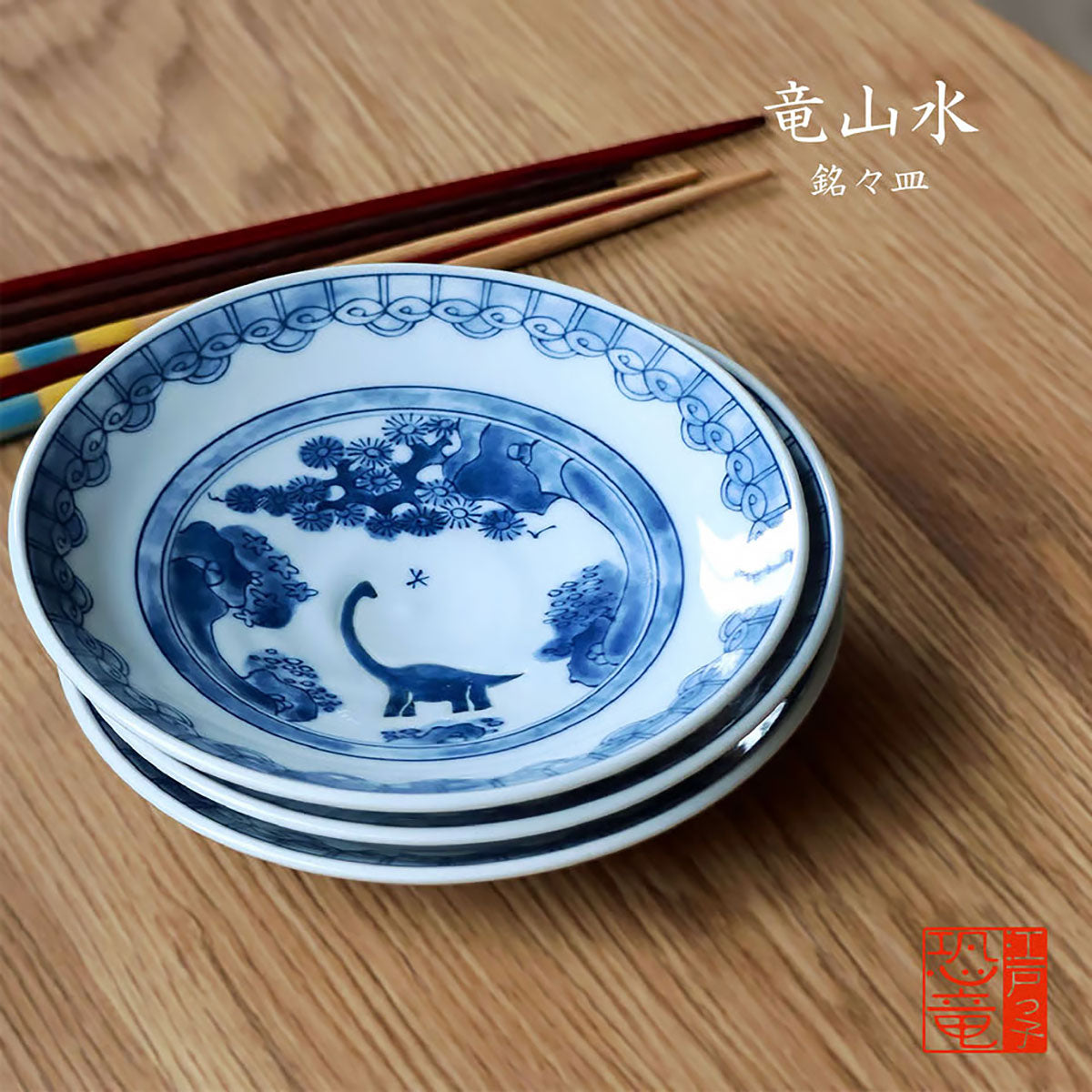 江戸っ子恐竜 竜山水 銘々皿【日本製 美濃焼】
